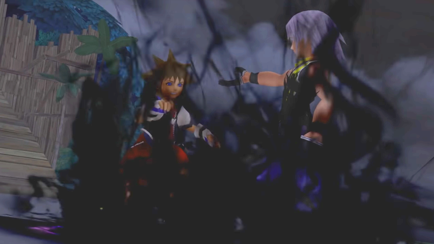 Kingdom Hearts has received both praise and criticism from the gaming community throughout the years, with no small part of that criticism coming from its cut-scene-driven gameplay. As soon as the player begins a new game, they are shown a 3-minute long cut-scene that provides little to no exposition and acts more as a music video for the game’s main theme song. Egenfeldt-Nielsen states that “…cinematics are used to convey useful information…,” and aside from that introductory cut-scene , all subsequent cut-scenes in Kingdom Hearts serve to convey a variety of information to the player including introducing new surroundings, showing character development, and telling the story of Kingdom Hearts (Egenfeldt-Nielsen, pg. 177). In Figure 1, the player sees a friend of Sora, Riku, talk about not being afraid of “the darkness,” an evil entity that devours worlds and manifests itself through enemies called “The Heartless.” This scene comes after a previous cut-scene where Sora’s other friend, Kairi, made comments about Riku acting differently